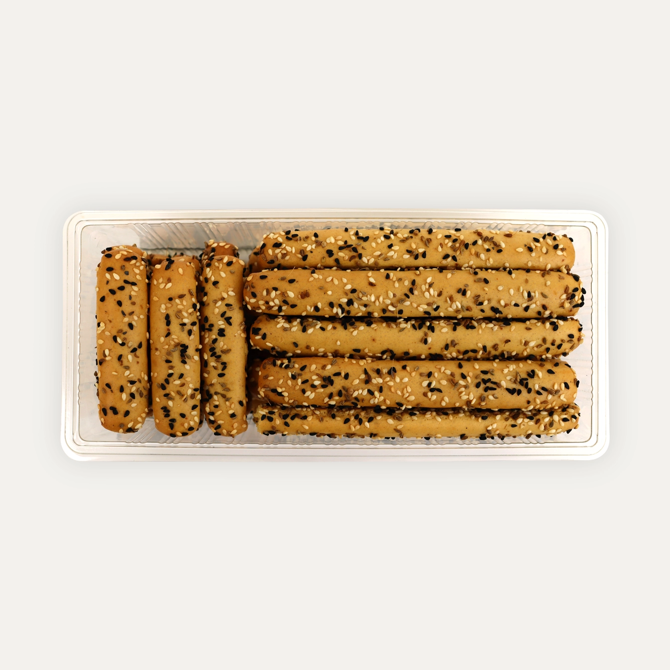 Crispy breadsticks made from fine dough with fennel, anise, and natural yeast from hummus, topped with sesame, pumpkin seeds, black cumin and anise seeds.
