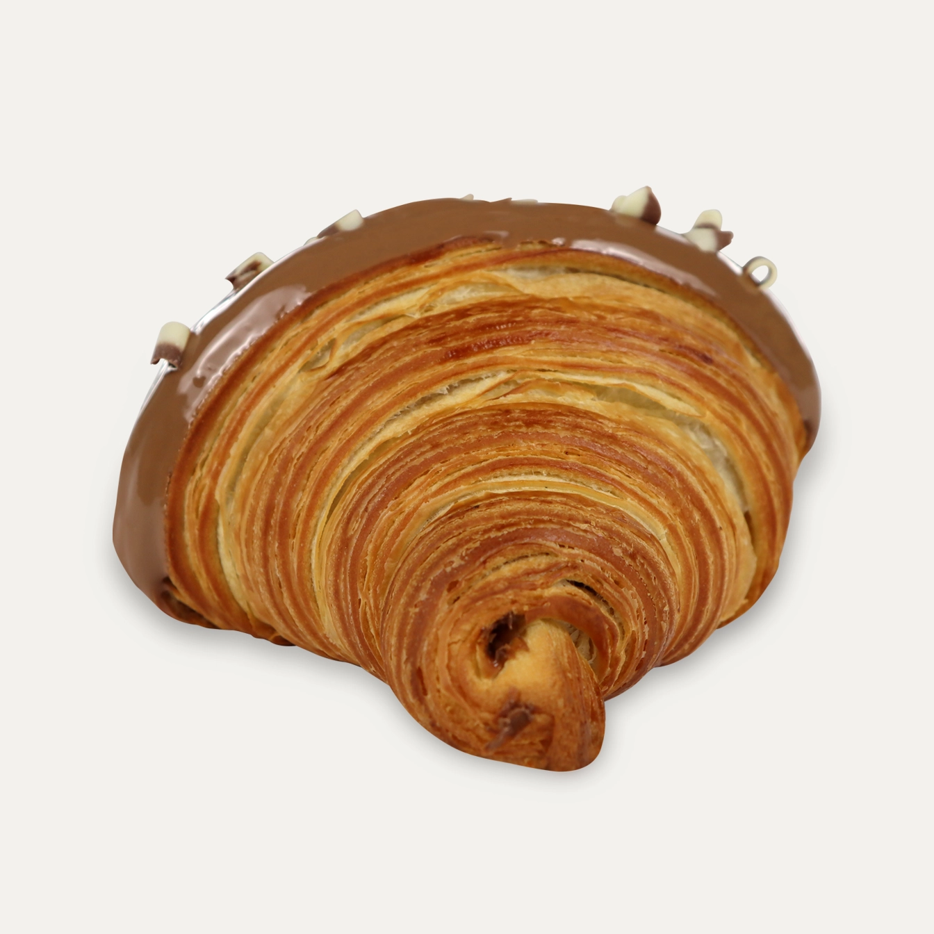 Flaky croissant made with real butter, filled with nocciolacreme, topped with Belgian chocolate glaze.
