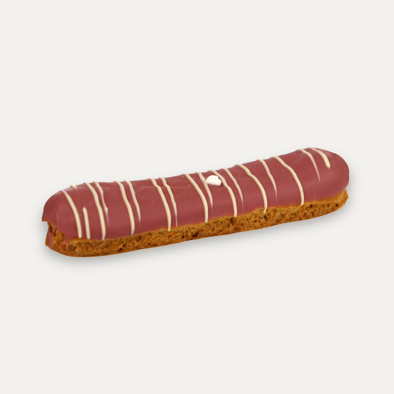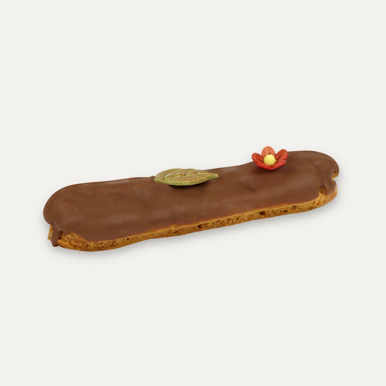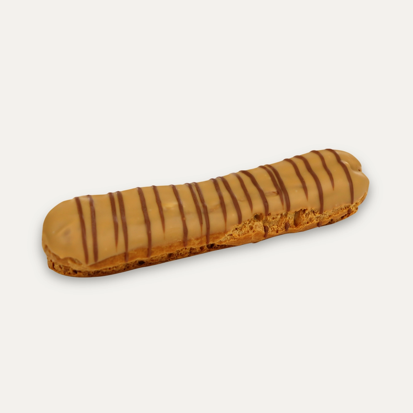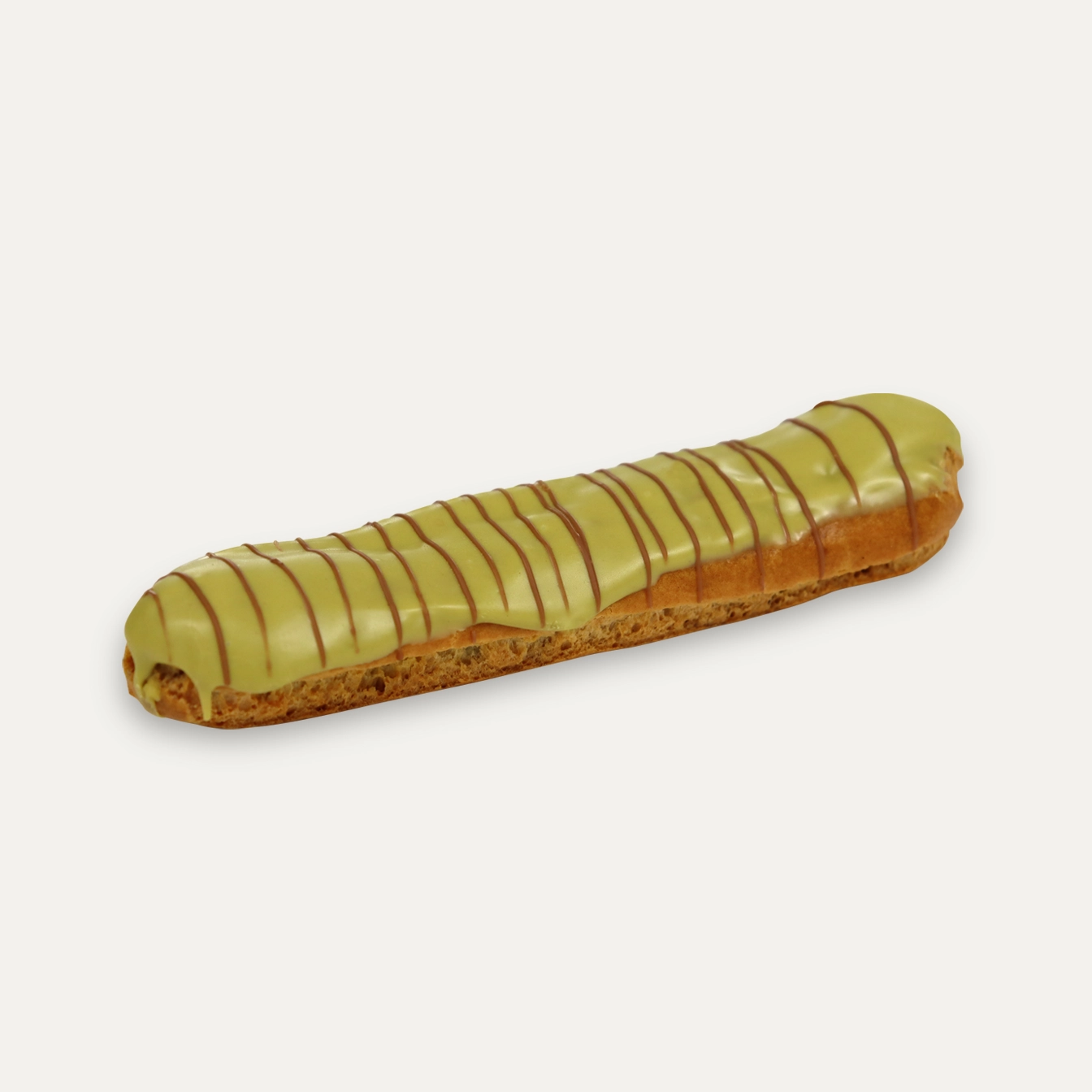 Light éclairs with creamy fillings in pistachio, caramel, or nocciola cream, along with a vanilla cream version finished with a belgian chocolate glaze.