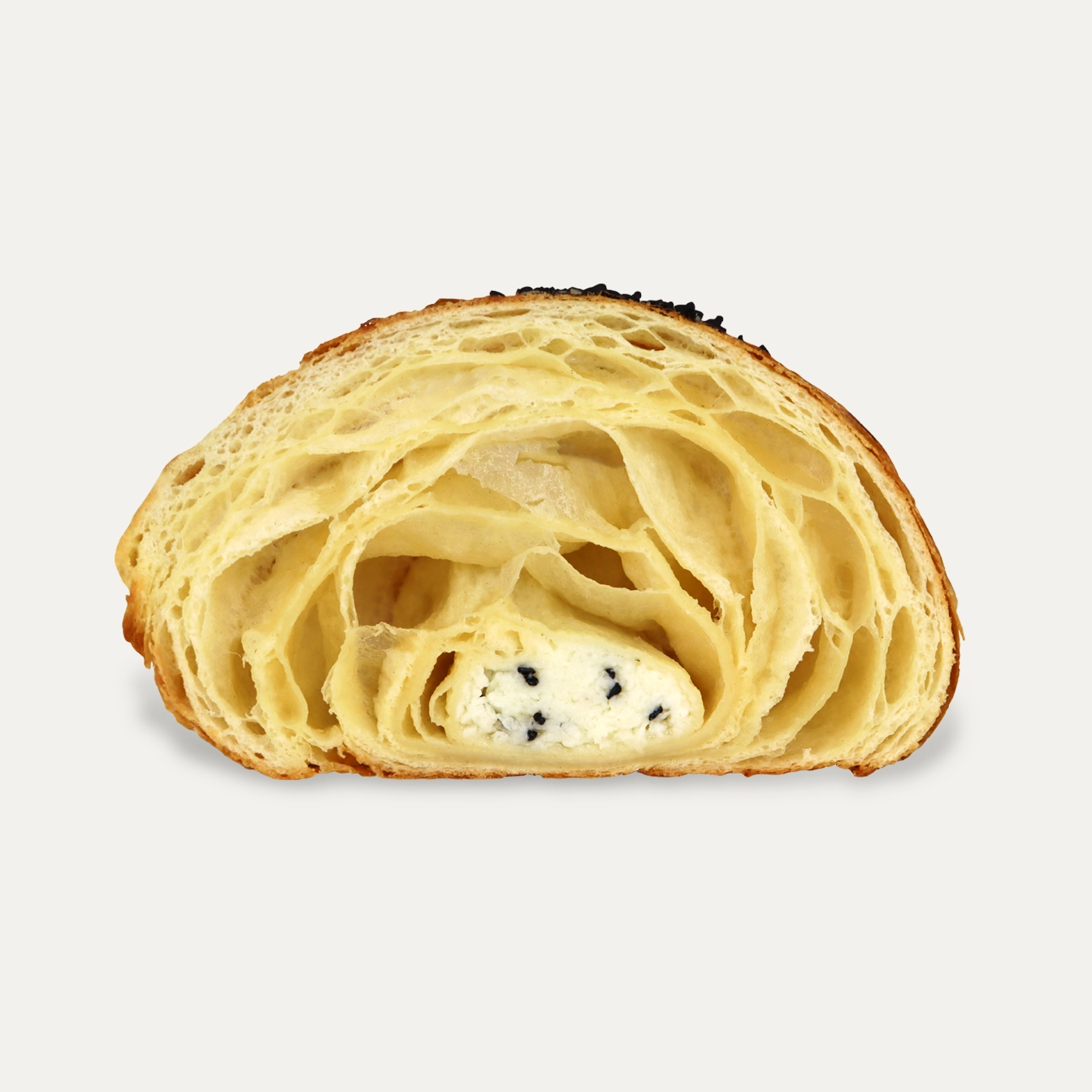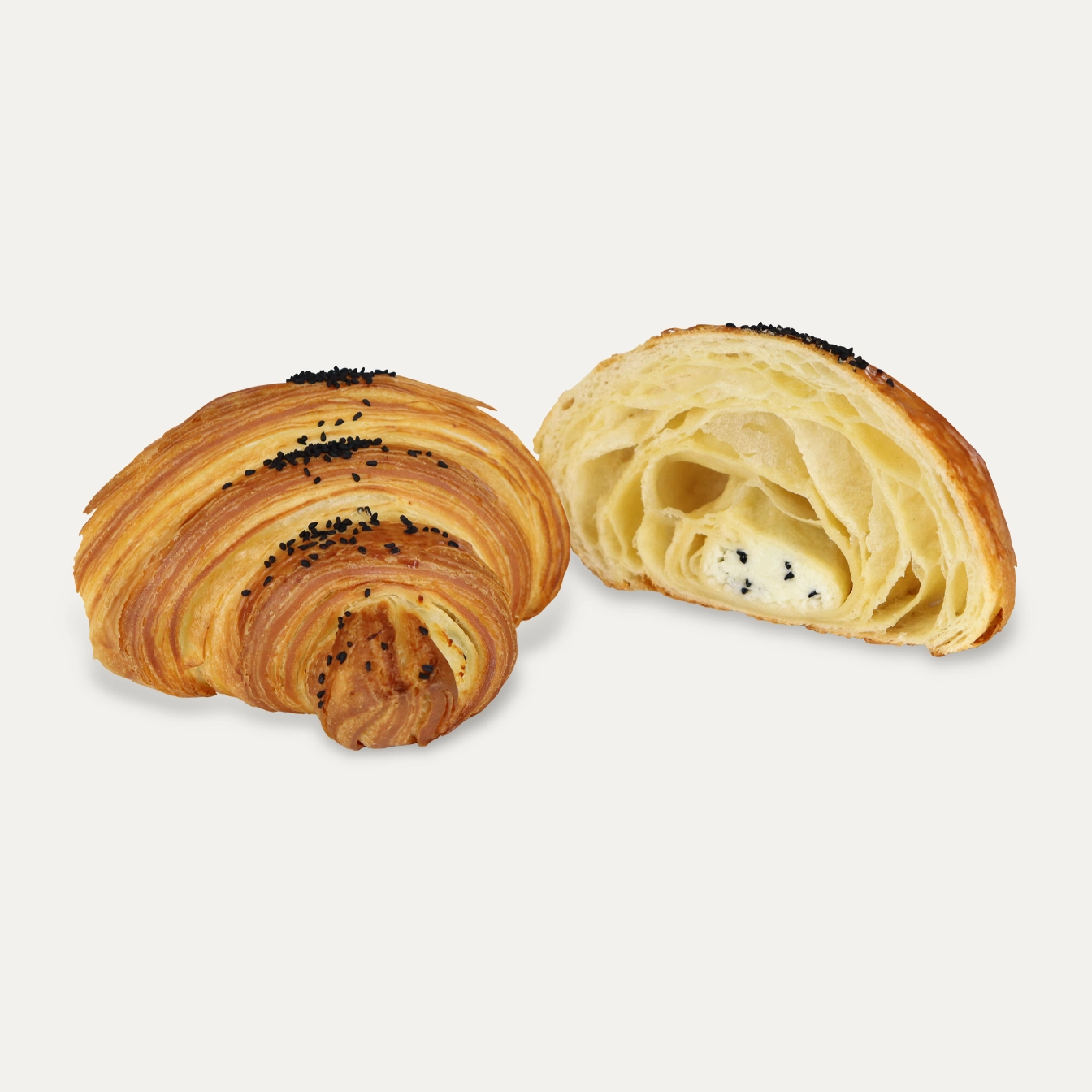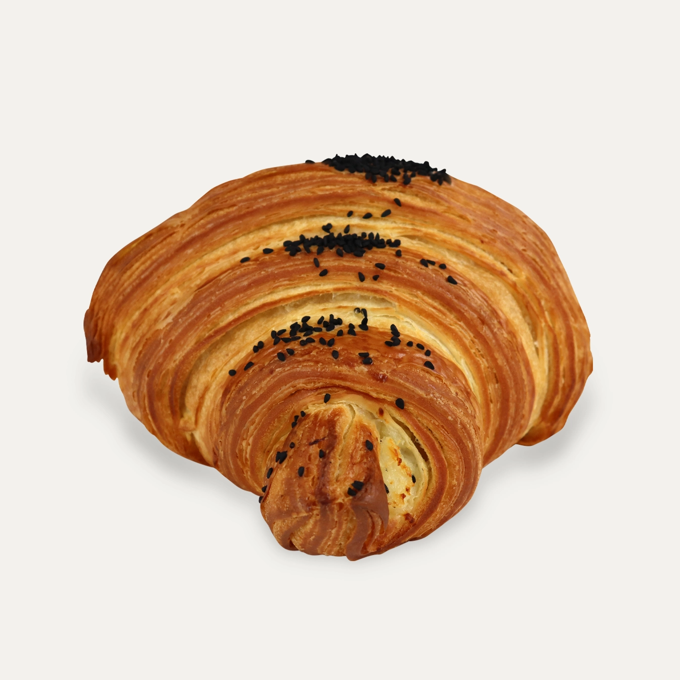 Flaky croissant made with real butter, filled with savory halloumi and topped with black cumin.