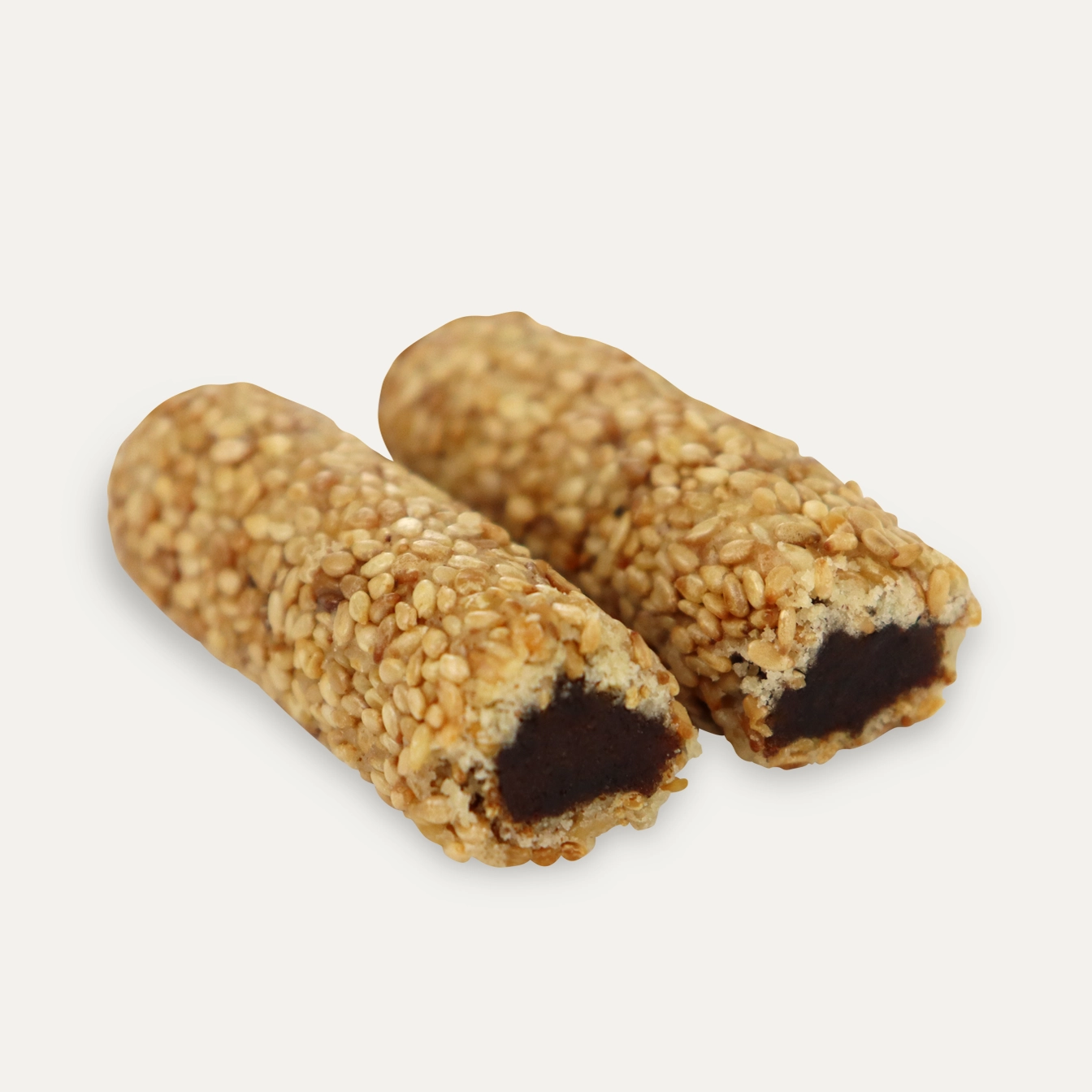 Soft buttery dough, filled with a fine date filling and topped with roasted sesame seeds.