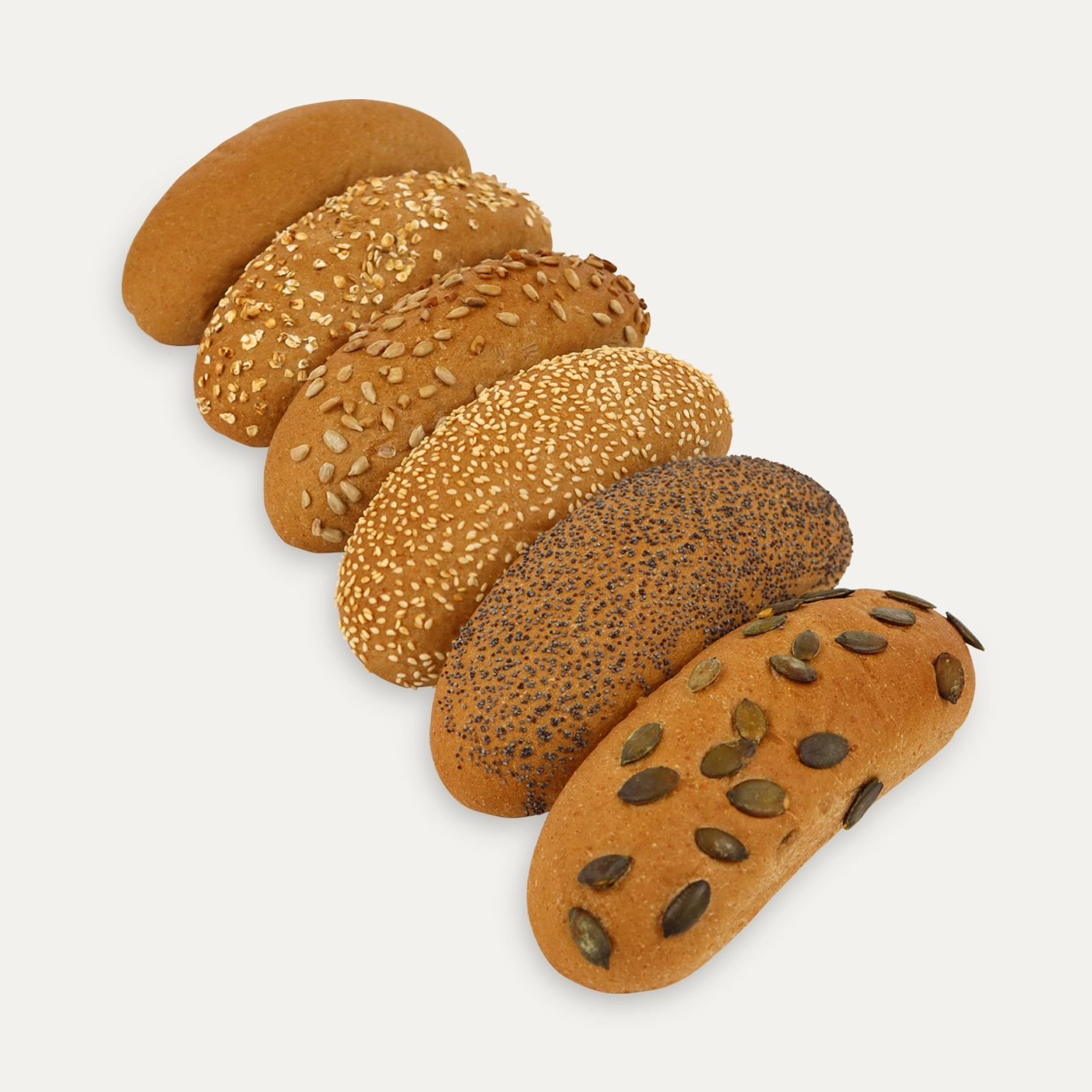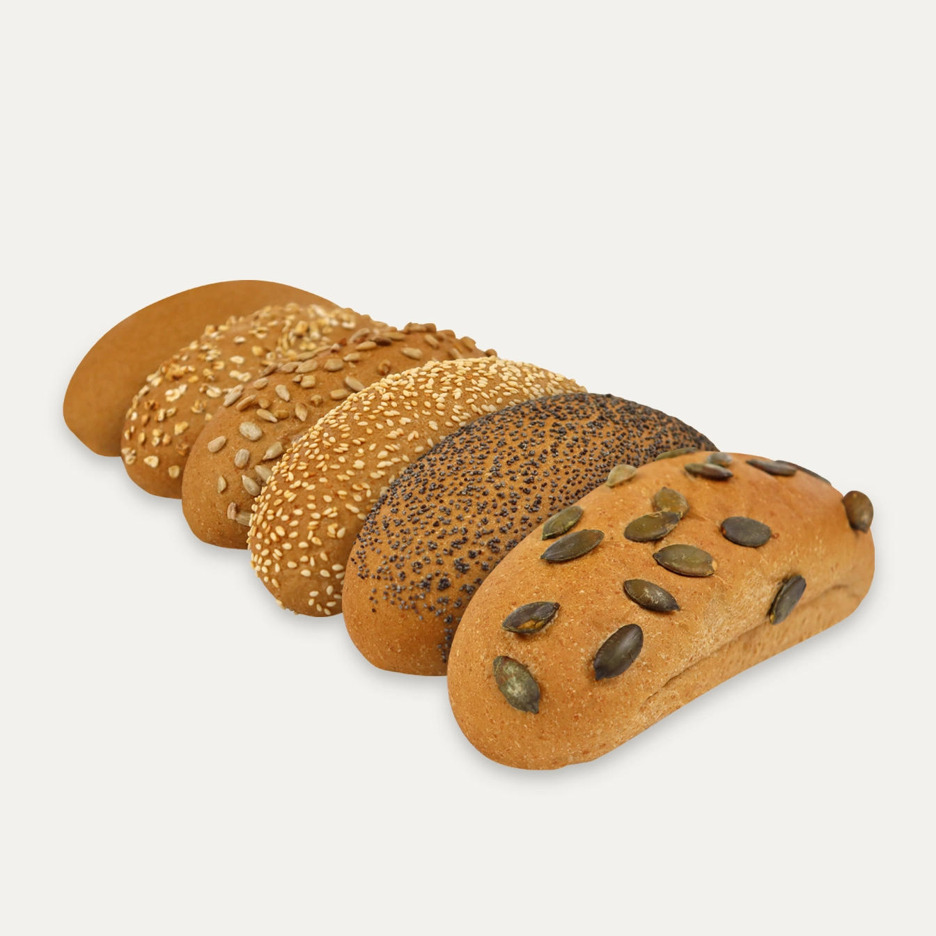 Fluffy whole grain milk bread, topped with your choice of sesame, poppy seeds, pumpkin seeds, sunflower seeds, or oats.