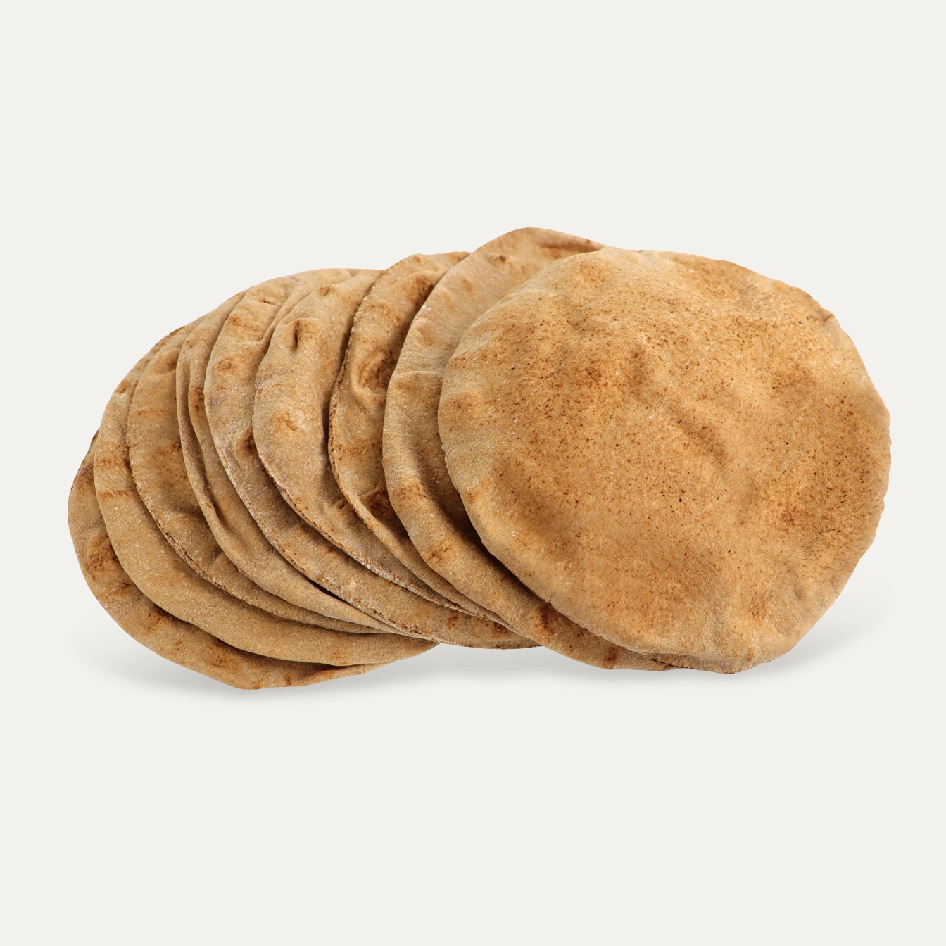 Wholegrain Pita (approx. 24 cm) -9 pieces per sack. Always freshly baked with natural ingredients, free from preservatives and sugar. 100% vegan and lactose-free.